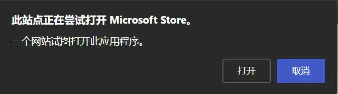 3.在出现的对话框中选择打开,将会打开Microsoft store