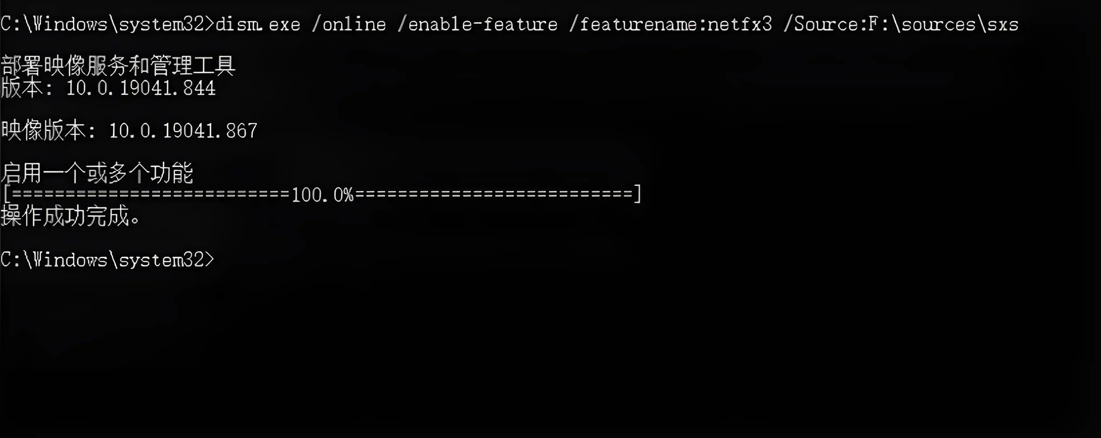 ❗❗❗注意下面命令中F:\sources\sxs里的F:要更换为步骤2.1中所挂载的盘符。