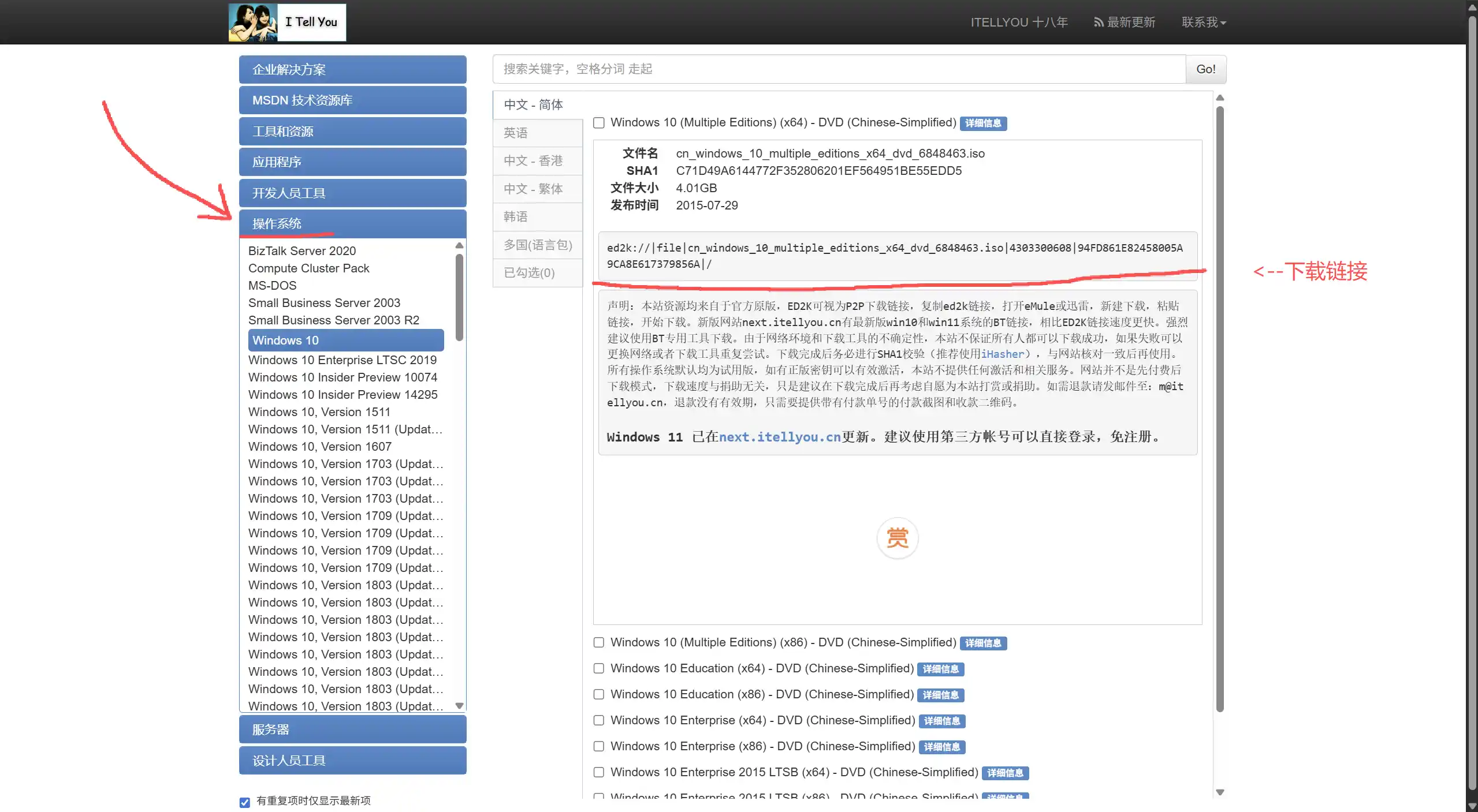 去MSDN下载ISO映像,部分版本的Windows10系统映像去MSDN的新站下载。