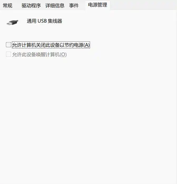 3.切换到电源管理选项卡,然后取消选中允许计算机关闭此设备以节省电量选项。单击确定保存更改。
