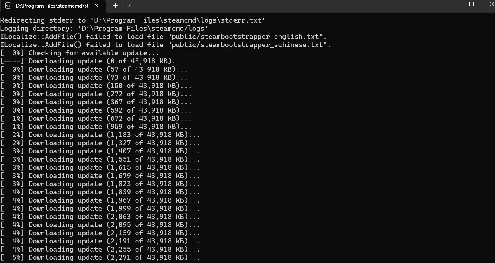 打开SteamCMD,第一次打开SteamCMD会自动下载所需文件