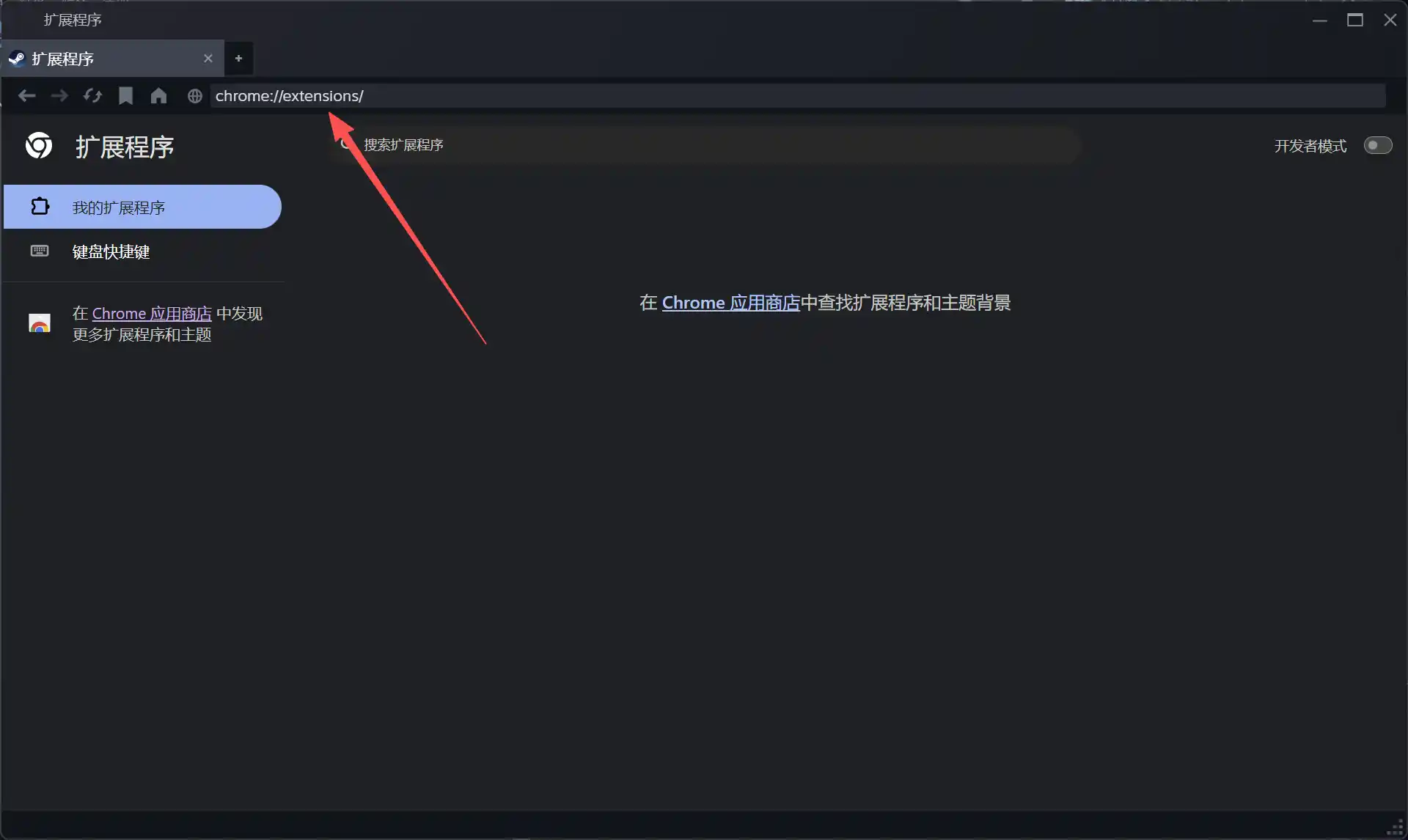 2.在打开页面中的网址栏输入chrome://extensions然后按Enter键进入插件管理界面